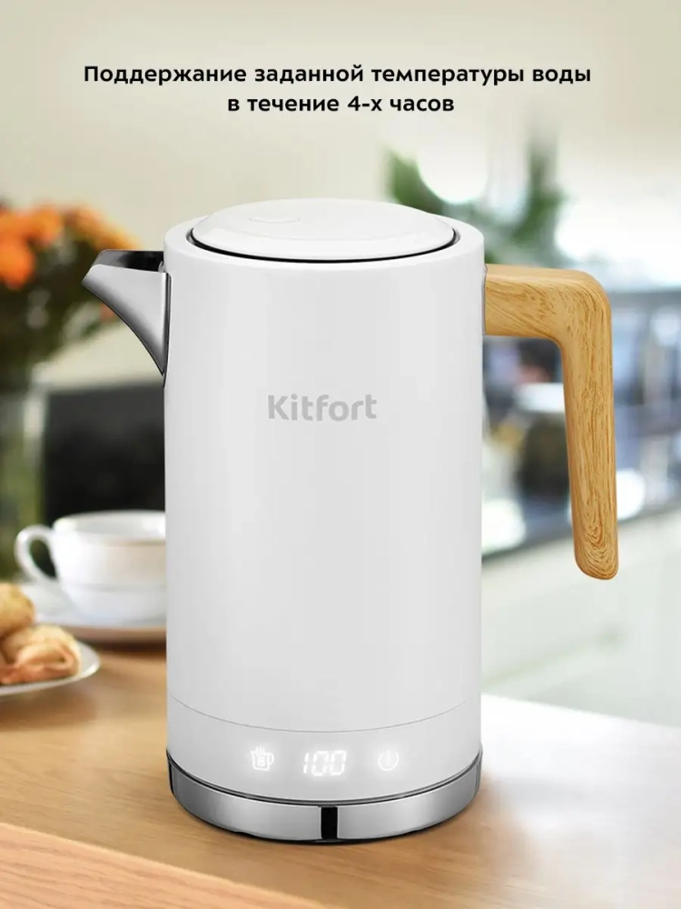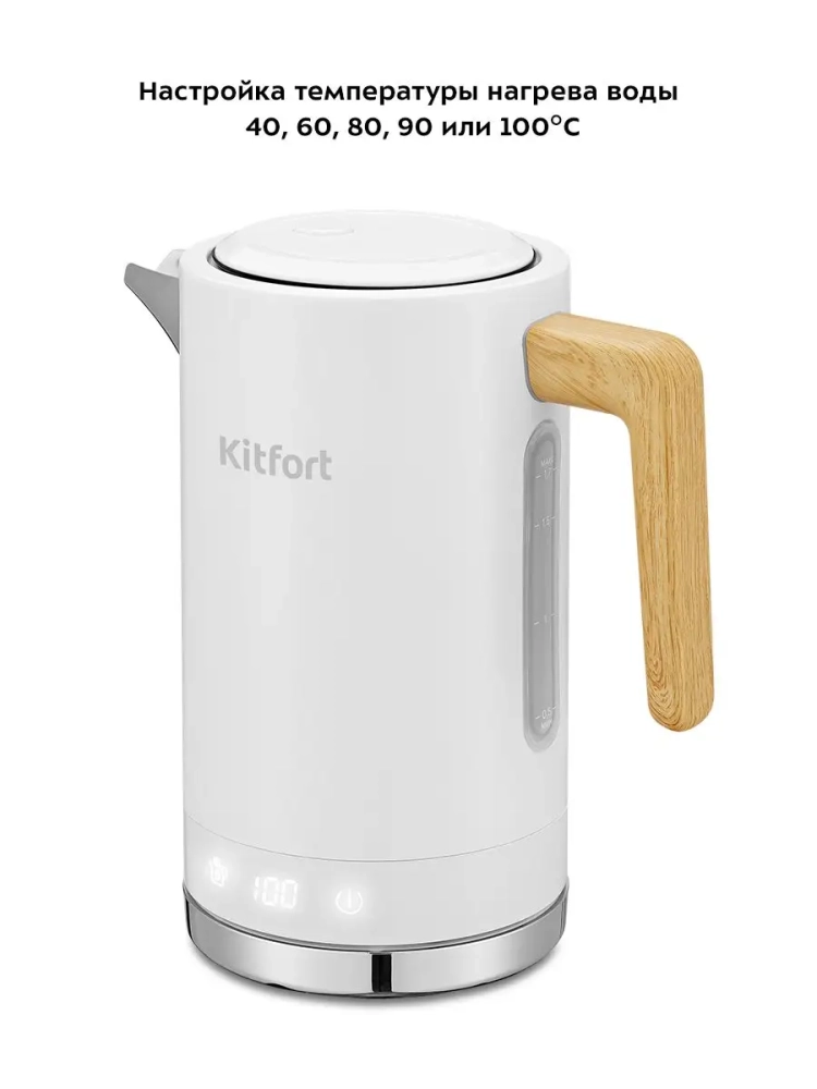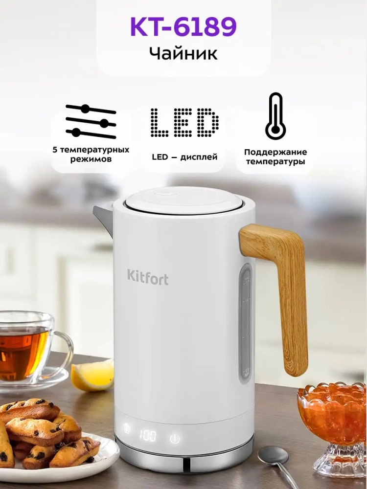 Электрический чайник Kitfort КТ-6189 — это надежный помощник для вашей кухни, сочетающий в себе функциональность и стильный дизайн. Этот электрочайник мощностью 2200 Вт быстро вскипятит воду и обеспечит точный контроль температуры благодаря электронному терморегулятору. Вы можете выбрать один из пяти температурных режимов: 40, 60, 80, 90 и 100 °С, что делает его идеальным для заваривания различных сортов чая и приготовления детского питания.