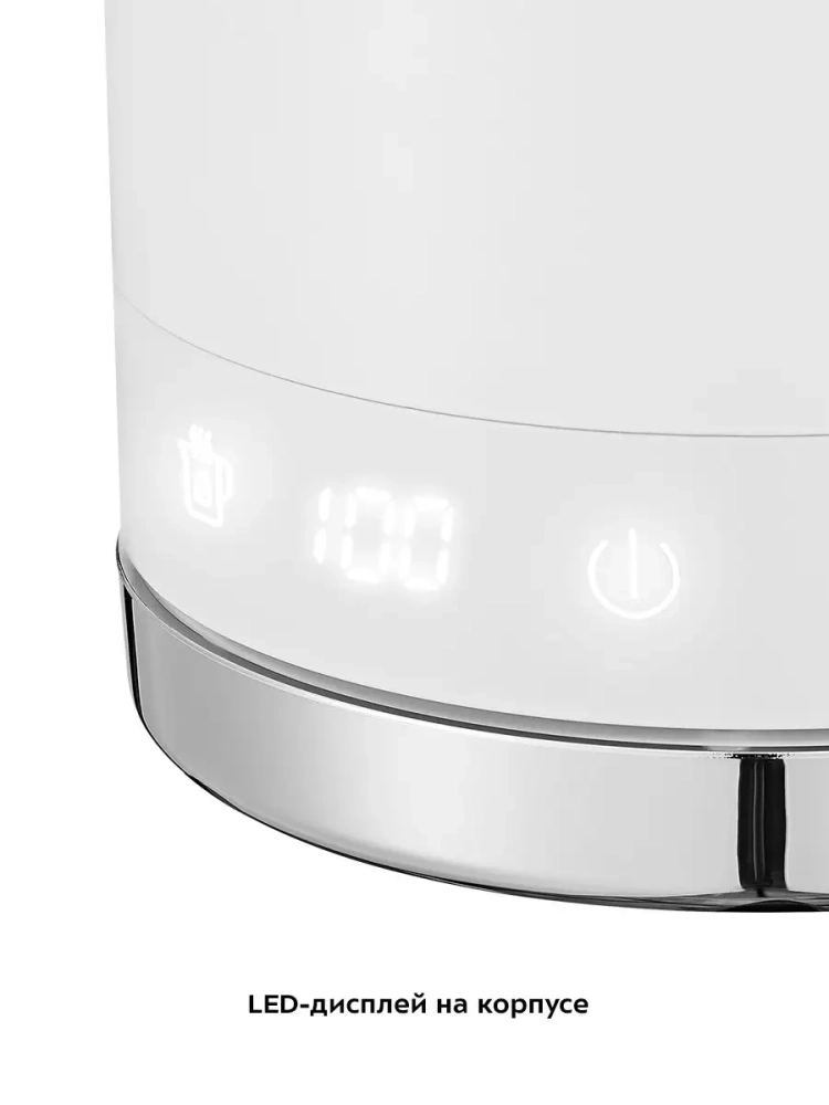 Чайник оснащен функцией поддержания температуры и звуковыми сигналами, которые уведомляют о закипании и окончании работы. Встроенный термодатчик и LED-дисплей на панели управления позволяют постоянно контролировать температуру воды. Все кнопки имеют световую индикацию, что упрощает выбор программы.