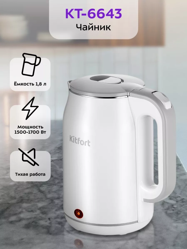 Электрический чайник Kitfort КТ-6643 предназначен для кипячения воды дома, в офисе, на даче.