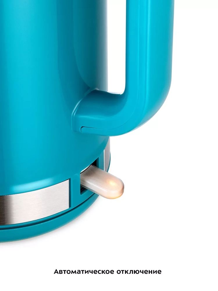 Чайник автоматически отключается при закипании, имеет защиту от перегрева и от включения без воды.