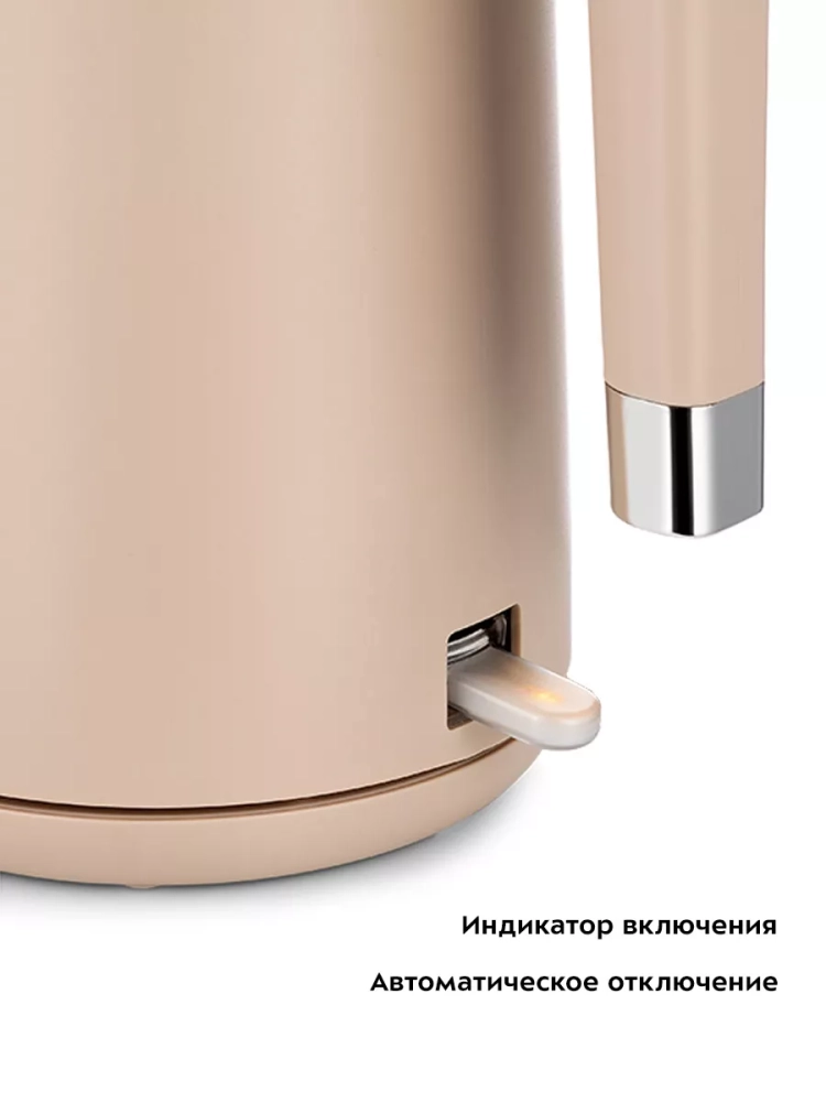 Чайник автоматически отключается при закипании, имеет защиту от перегрева и от включения без воды.