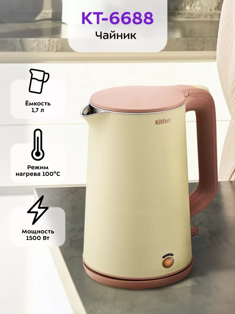Электрический чайник Kitfort КТ-6688 предназначен для кипячения воды дома, в офисе, на даче.