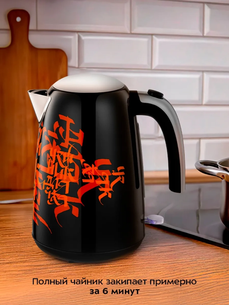 Полный чайник закипает примерно за 6 минут. Чайник автоматически отключается при закипании и снятии с подставки, имеет защиту от перегрева и от включения без воды. Чайник также оснащен фильтром от накипи.
