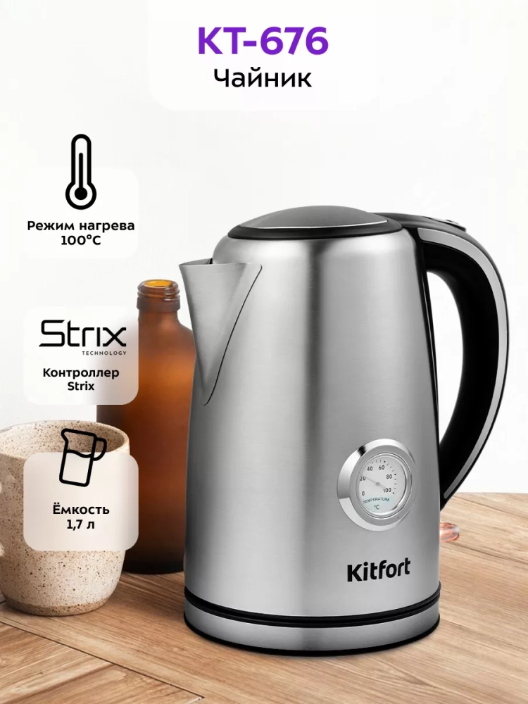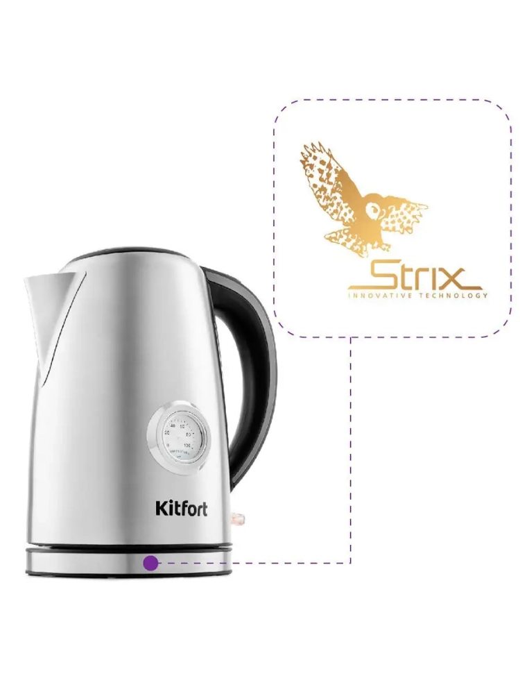 Электрический чайник Kitfort КТ-676 предназначен для кипячения воды дома, в офисе, на даче. Мощность чайника позволяет использовать его в домах со слабой проводкой.