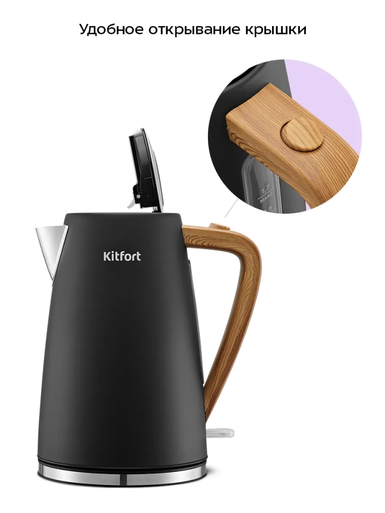 Электрические чайники Kitfort — это надежность и стиль в каждой детали. Черный металлический корпус, подсветка и температурный режим делают этот электрочайник незаменимым помощником на кухне. Объем 1.7 литров позволяет готовить горячие напитки для всей семьи, а нержавеющая сталь обеспечивает долговечность и простоту в уходе. Выбирайте Kitfort для комфортного и безопасного использования.