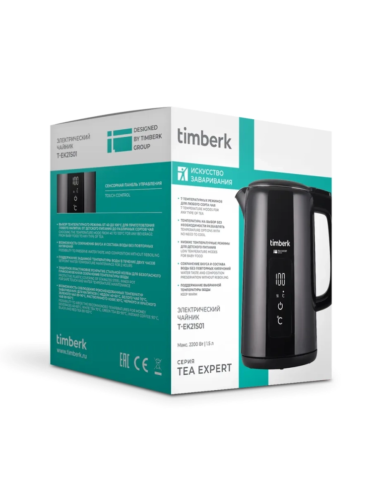 Чайник Timberk поддерживает температуру в течение 2 часов, чтобы Вы дольше наслаждались горячими напитками. Двойные стенки делают внешнюю поверхность чайника безопасной для прикосновения. Сенсорная панель управления с индикатором позволяет контролировать температуру воды. Чайник оснащён системой защиты от сухого кипячения, если в чайнике нет или мало воды, он автоматически отключится. В комплект прибора входят база питания с отсеком для хранения шнура, съемный нейлоновый фильтр для защиты от накипи.