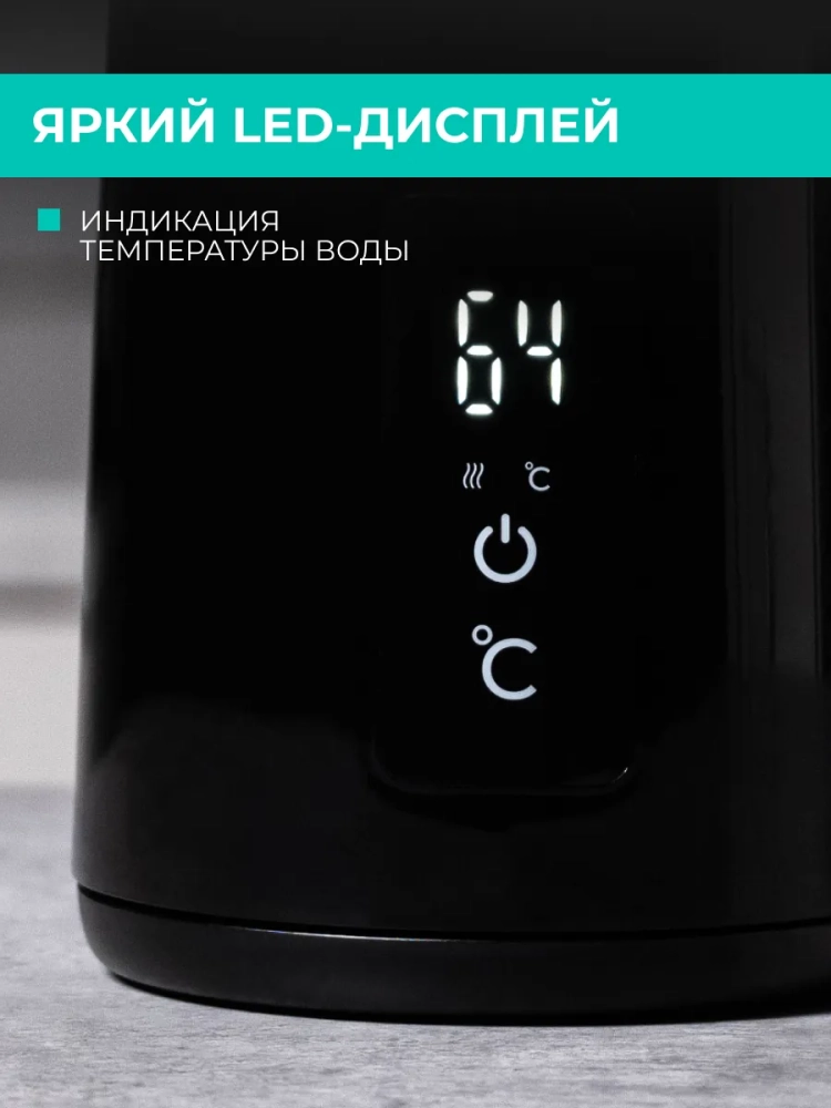 Преимущества прибора: 7 температурных режимов для любого сорта чая. Сенсорная панель управления. Поддержание заданной температуры в течение 2 часов. Выбор температурного режима от 40 до 100 °С. Сохранение вкуса и состава воды без повторных кипячений. Низкие температурные режимы для детского питания. Защитное пластиковое покрытие стальной колбы для безопасного прикосновения. Открытие крышки в одно касание. Съемный нейлоновый фильтр для защиты от накипи.