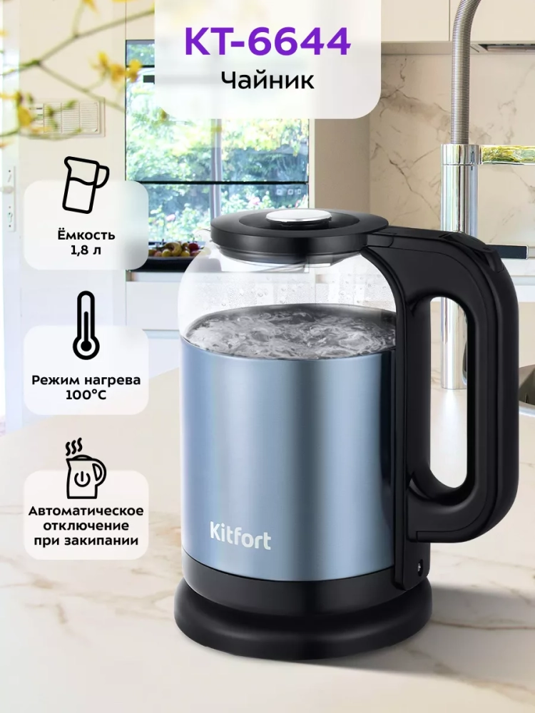 Электрический чайник Kitfort КТ-6644 предназначен для кипячения воды дома, в офисе, на даче.