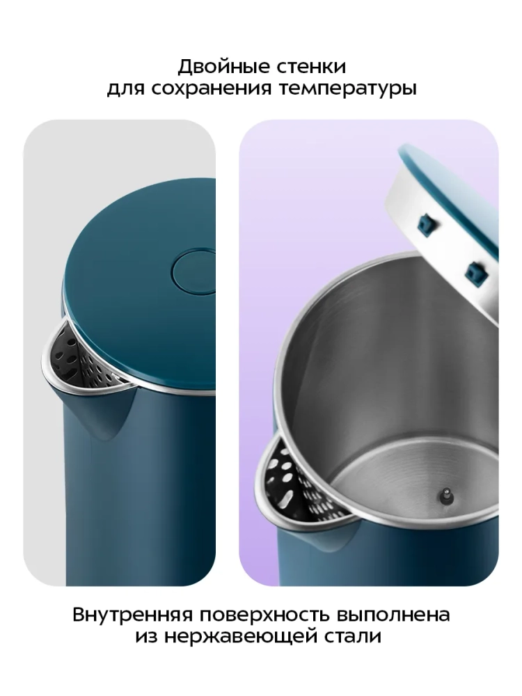 Подставка с центральным контактом дает возможность располагать на ней чайник в любом положении, обеспечивая вращение на 360°. Снизу подставки расположен отсек для хранения шнура, чтобы шнур не мешал на столе.
