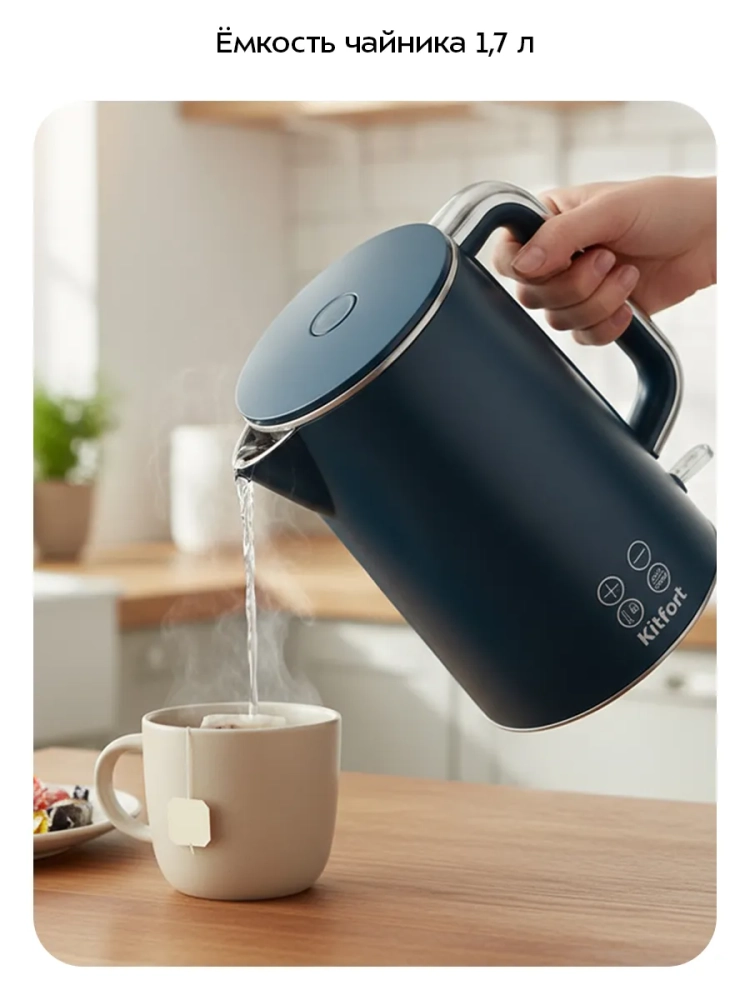 Электрический чайник с электронным терморегулятором Kitfort КТ-6784 может не только вскипятить воду, но и нагреть ее до температуры в диапазоне от 50 до 90 °С с шагом 10 °С, что очень удобно при заваривании различных сортов чая, а также при приготовлении детского питания. Чайник также оснащен функцией поддержания температуры в течение 30 минут. Температура воды контролируется встроенным в дно чайника термодатчиком.