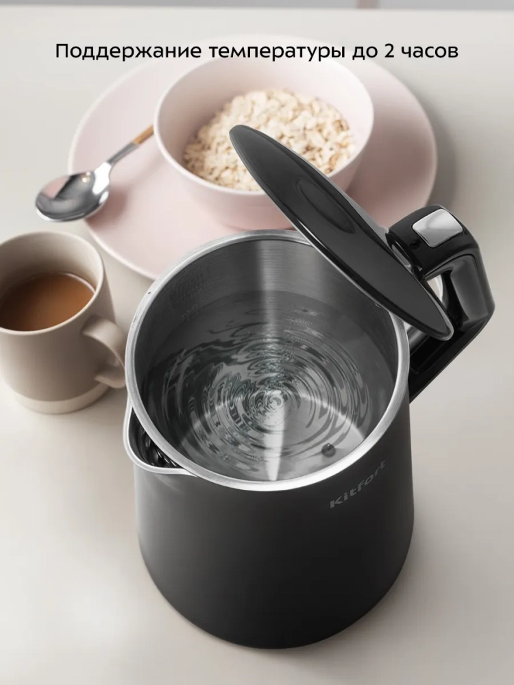 Функция поддержания температуры позволяет сохранять воду горячей в течение длительного времени, что особенно удобно для тех, кто ценит комфорт и экономию времени. Электрочайники Kitfort с терморегулятором обеспечивают точное поддержание заданной температуры, что делает их идеальными для приготовления различных напитков.