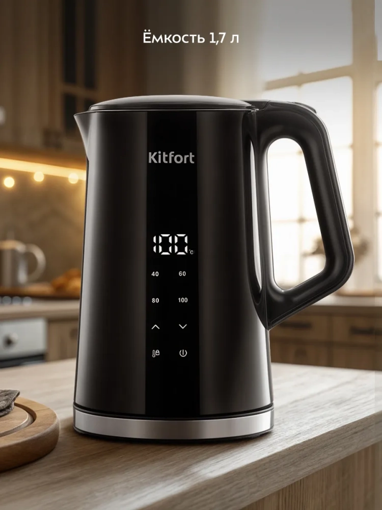 Электрические чайники Kitfort — это гарантия качества и долговечности. Черный и серый металлический корпус, сенсорный дисплей и возможность поддержания температуры делают этот чайник незаменимым помощником в вашем доме. Выбирая Kitfort, вы выбираете надежность и стиль.