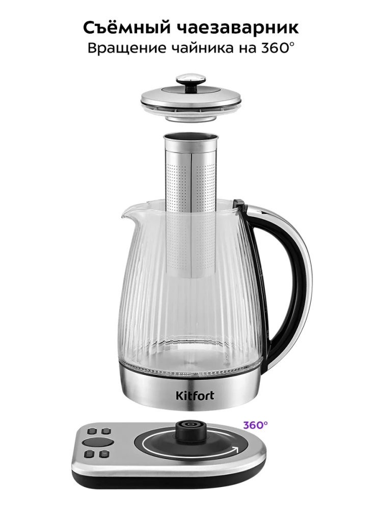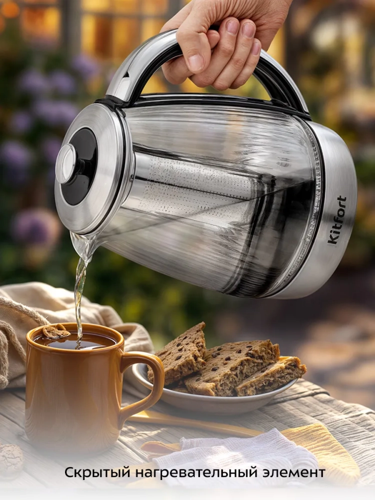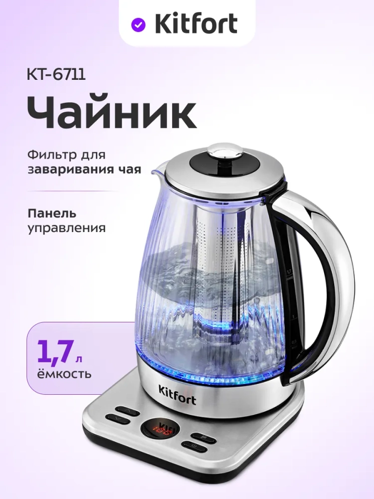 В чайнике КТ-6711 есть встроенный фильтр для заваривания чая. Вам нужно только засыпать чайные листья в корзину, залить воду и выбрать необходимую температуру.
