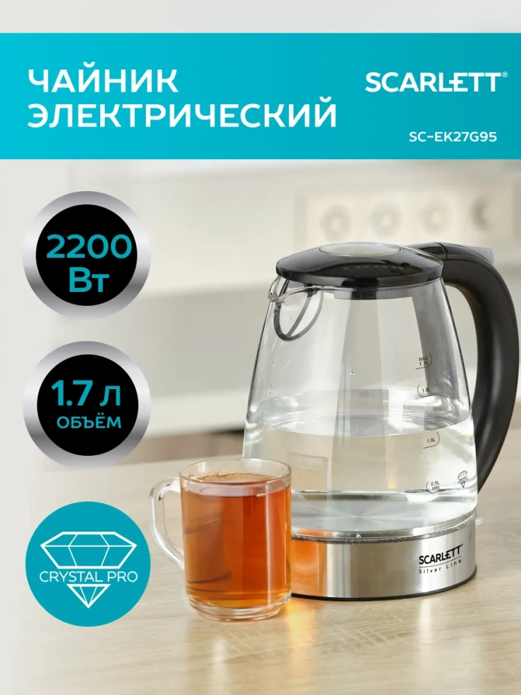Чайник электрический SC-EK27G95, 1.7 л, 2200 Вт