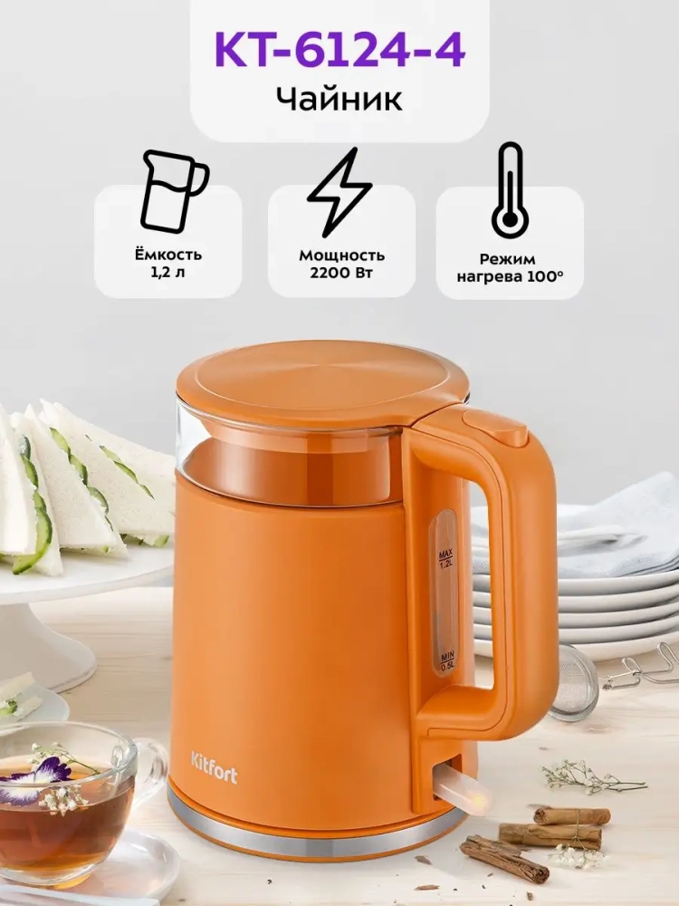 Электрический чайник Kitfort КТ-6124 предназначен для кипячения воды дома, в офисе, на даче.
