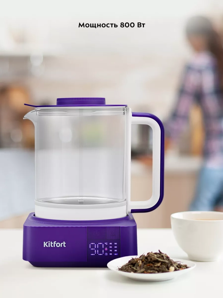 Электрический чайник с электронным терморегулятором Kitfort КТ-6191 может не только вскипятить воду, но и нагреть ее до температур: 45, 50, 55, 60, 70, 80 и 90 °С, что очень удобно при заваривании различных сортов чая. Чайник также оснащен функцией поддержания температуры и дехлорирования. Температура воды контролируется встроенным в дно чайника термодатчиком.