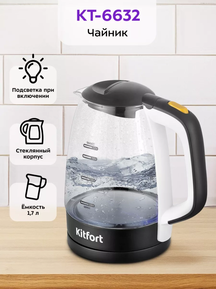 Электрический чайник Kitfort КТ-6632 предназначен для кипячения воды дома, в офисе, на даче.
