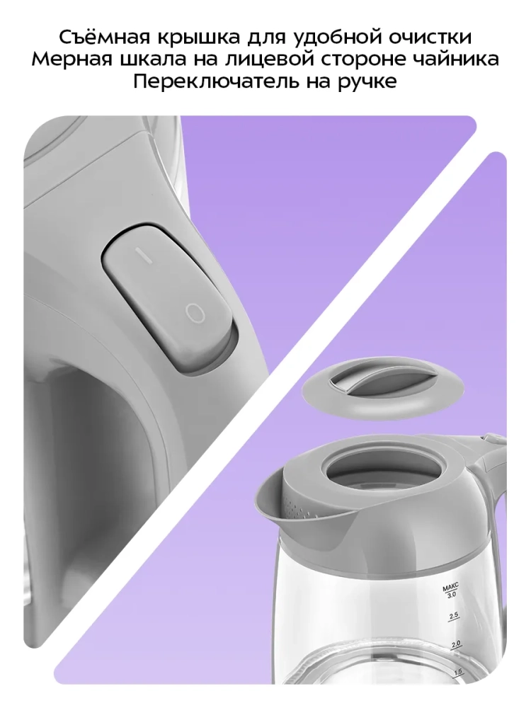 Полный чайник закипает примерно за 9 минут. Чайник автоматически отключается при закипании, имеет защиту от перегрева и от включения без воды.