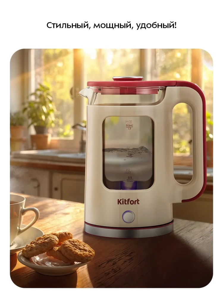 Электрический чайник Kitfort КТ-8711 предназначен для кипячения воды дома, в офисе, на даче. Также чайник может поддерживать температуру воды 85 °С.