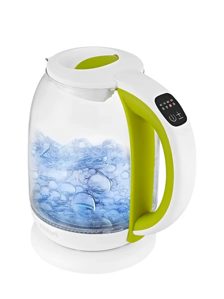Электрический чайник с электронным терморегулятором Kitfort КТ-6140 может не только вскипятить воду, но и нагреть ее до температуры 40, 70, 80 и 90 °С, что очень удобно при заваривании различных сортов чая. Температура 40 *С пригодится для приготовления детского питания. Чайник также оснащен функцией поддержания температуры. Температура воды контролируется встроенным в дно чайника термодатчиком.