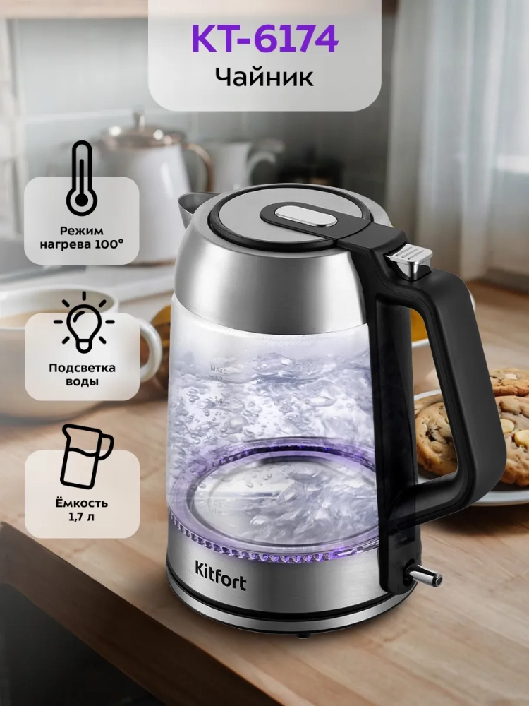Электрический чайник Kitfort КТ-6174 предназначен для кипячения воды дома, в офисе, на даче.