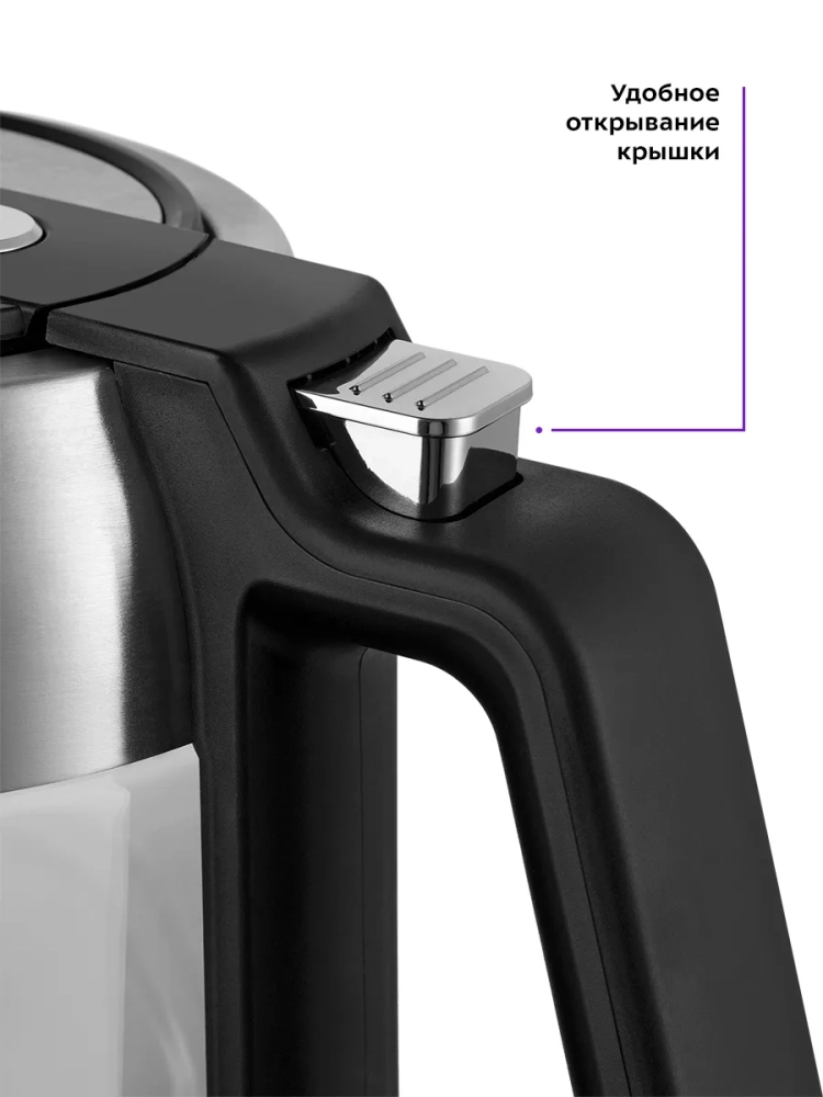 Чайник автоматически отключается при закипании, имеет защиту от перегрева и от включения без воды.