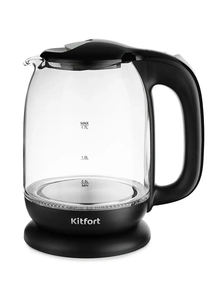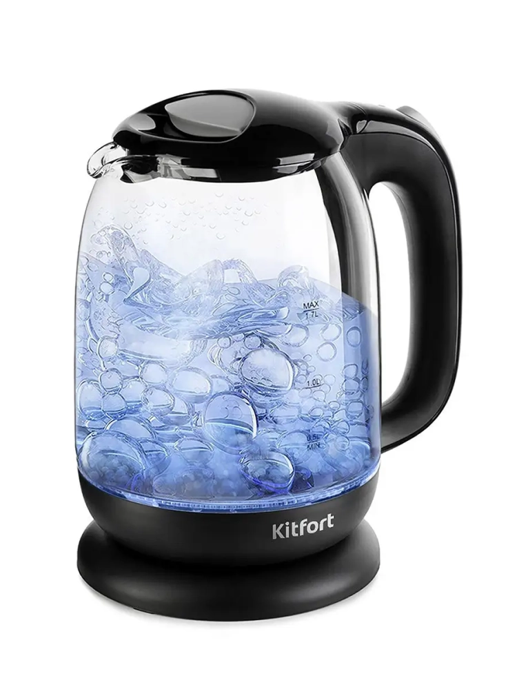 Электрический чайник Kitfort КТ-625 предназначен для кипячения воды дома, в офисах и на дачах. Мощность чайника позволяет использовать его в домах со слабой проводкой. Корпус чайника выполнен из стекла, а крышка и подставка — из пластмассы. Мерная шкала нанесена на прозрачную часть корпуса. Большое горлышко чайника облегчает доступ внутрь при мытье и во время удаления накипи. Ручка чайника пластиковая, не нагревается и удобно лежит в руке. Кнопка открывания крышки расположена сверху на крышке, а кнопка включения — на ручке. При включении чайника загорается синяя подсветка, которая является индикатором работы и одновременно художественно подсвечивает кипящую воду. Нагревательный элемент (ТЭН) у этой модели чайника скрытый и находится в донной части. Сверху он закрыт специальной металлической пластиной из нержавеющей стали, благодаря которой исключается прямой контакт ТЭНа с водой. Такая конструкция препятствует образованию накипи, облегчает уход и значительно снижает шум при нагревании воды. Подставка с центральным контактом дает возможность располагать на ней чайник на нее в любом положении, обеспечивая вращение на 360°. Снизу имеется отсек для хранения шнура, в который можно смотать излишки шнура электропитания, чтобы он не мешался на столе. Чайник Китфорт КТ-625 автоматически отключается при закипании и при снятии с подставки, имеет защиту от перегрева и от включения без воды.