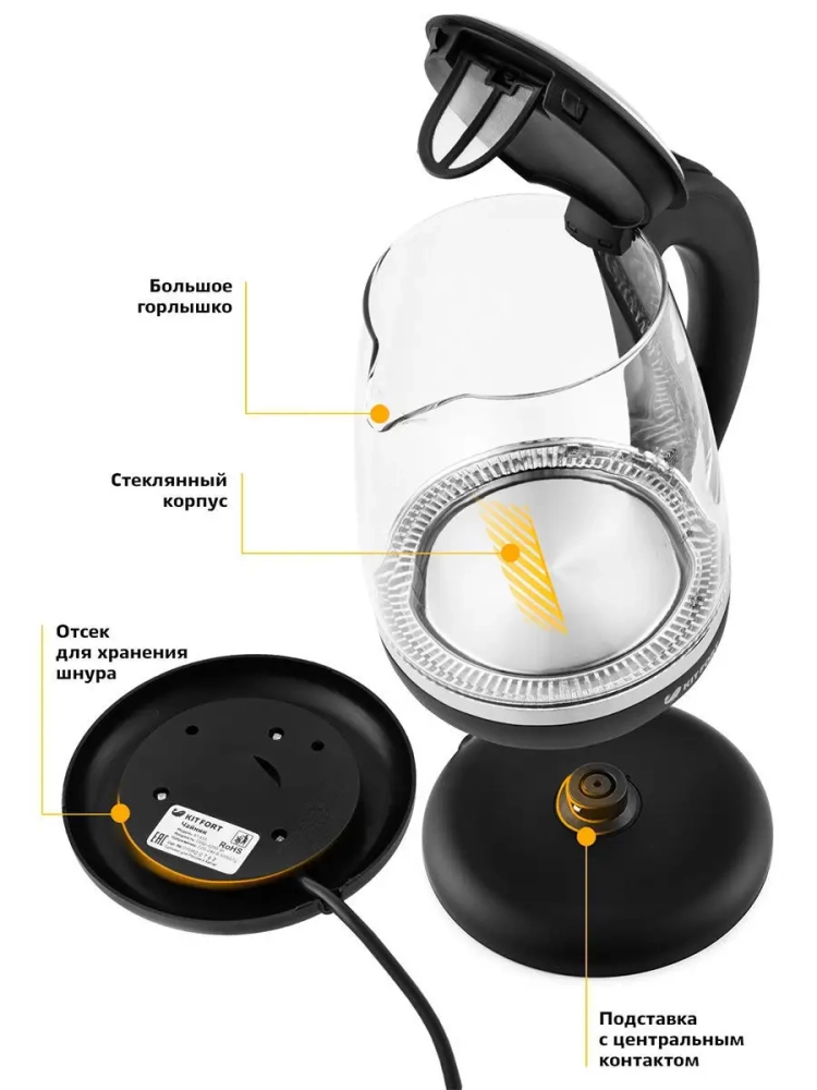 Электрический чайник Kitfort КТ-655 предназначен для кипячения воды дома, в офисе, на даче. Мощность чайника позволяет использовать его в домах со слабой проводкой.