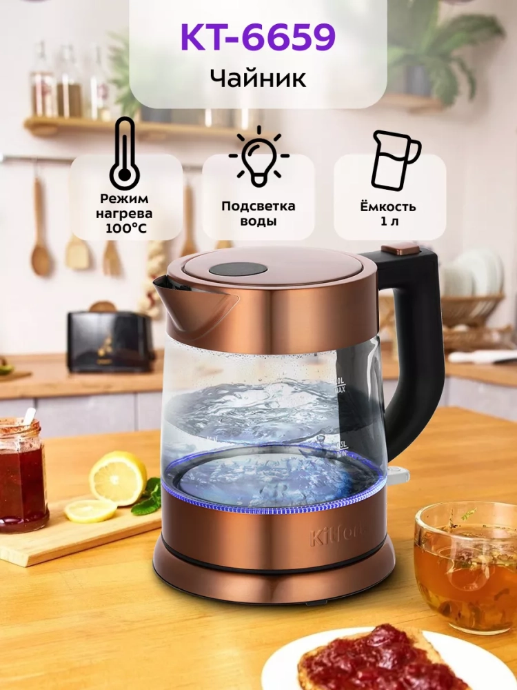 Электрический чайник Kitfort КТ-6659 предназначен для кипячения воды дома, в офисах и на дачах.