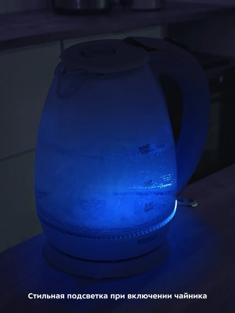 Чайник электрический стеклянный с подсветкой КТ-6667 - 1.7 л