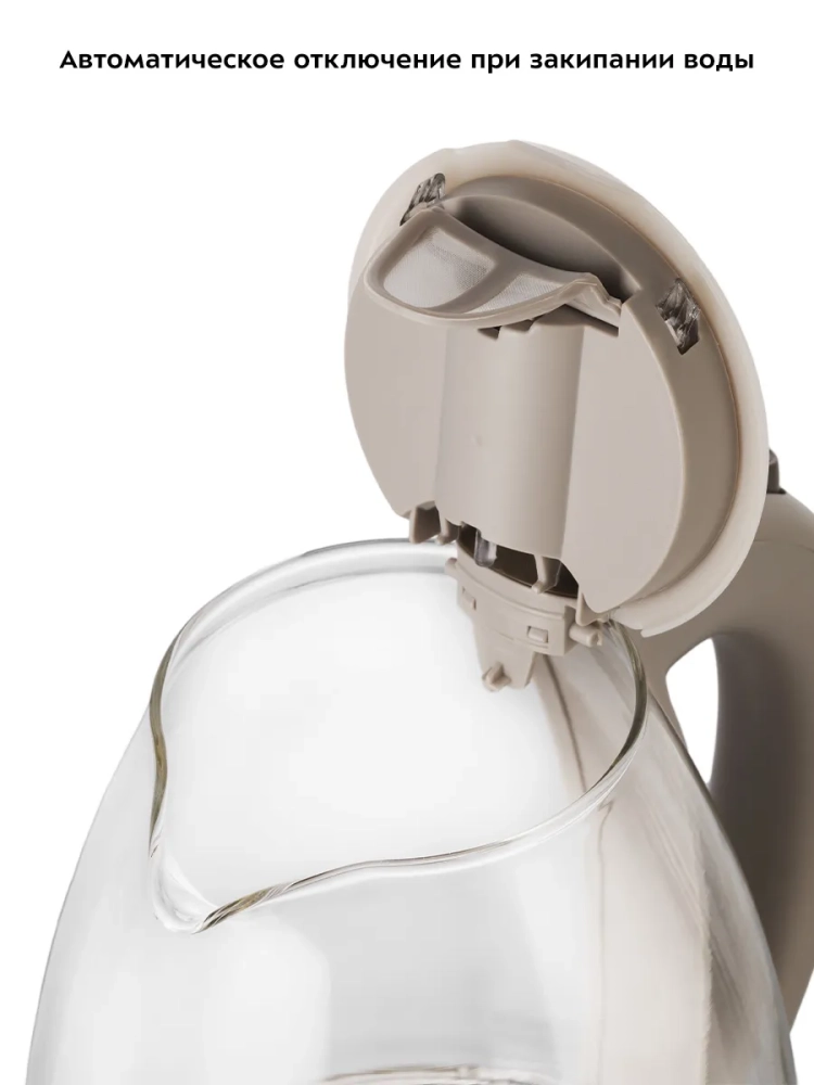 Чайник автоматически отключается при закипании и при снятии с подставки, имеет защиту от перегрева и от включения без воды.