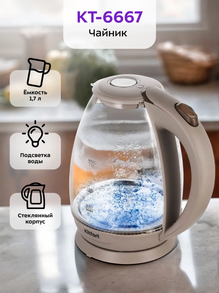 Электрический чайник Kitfort КТ-6667 предназначен для кипячения воды дома, в офисе, на даче.