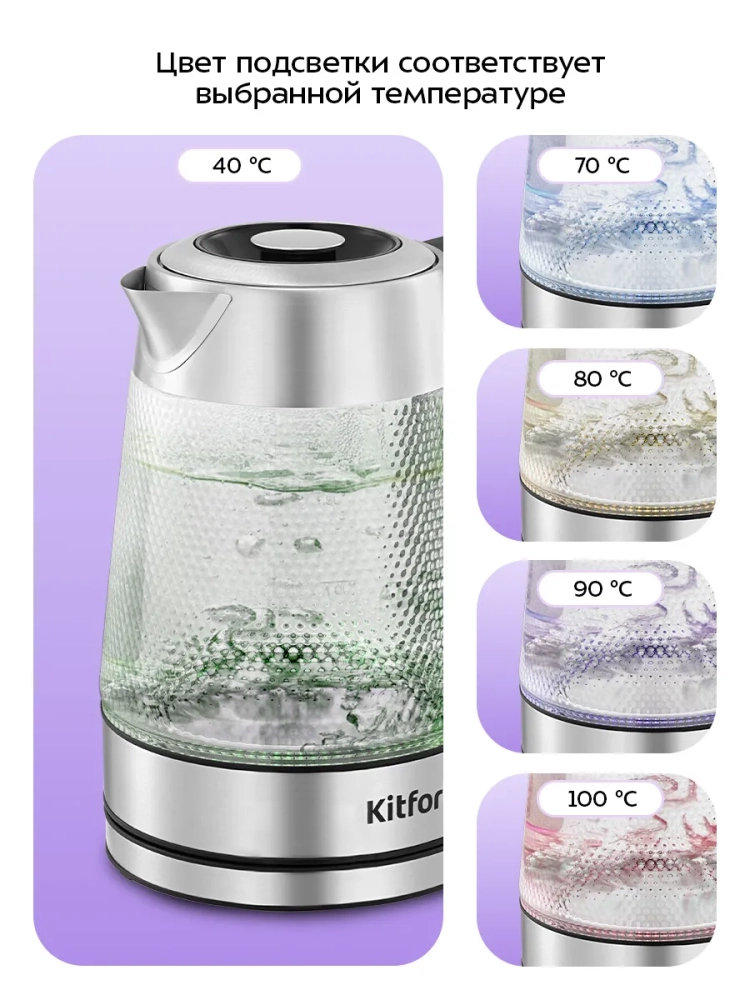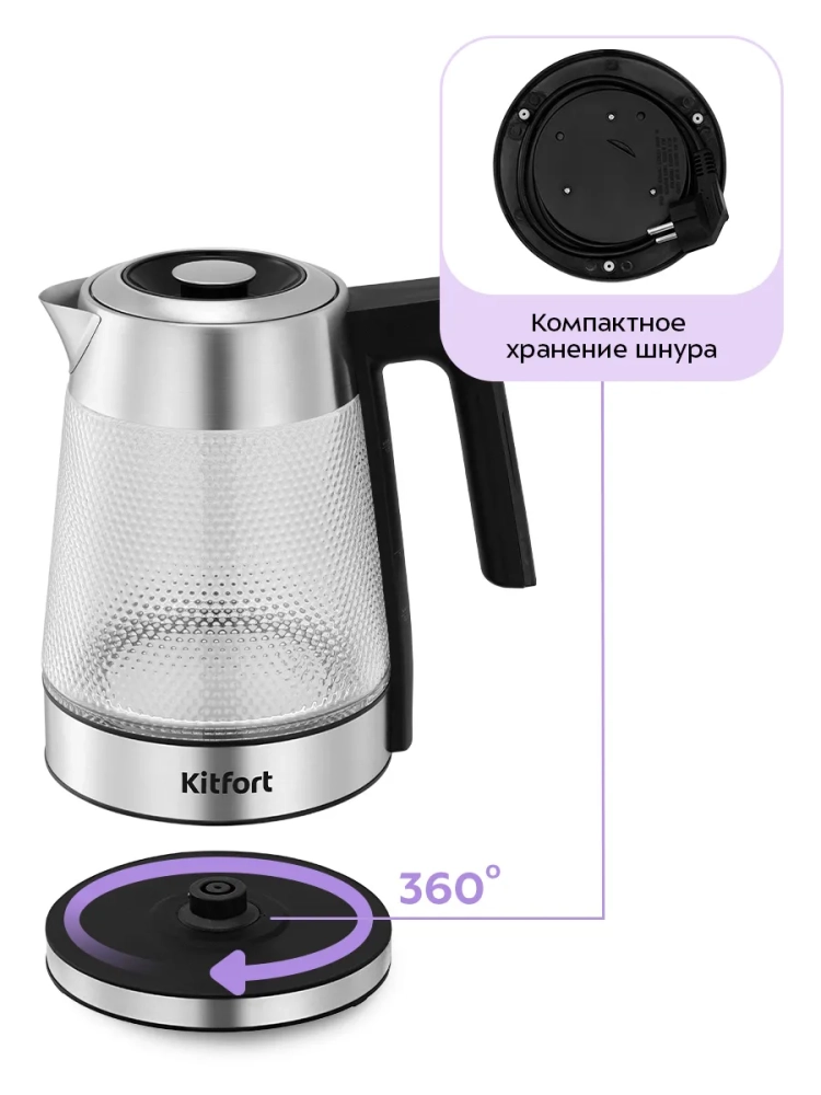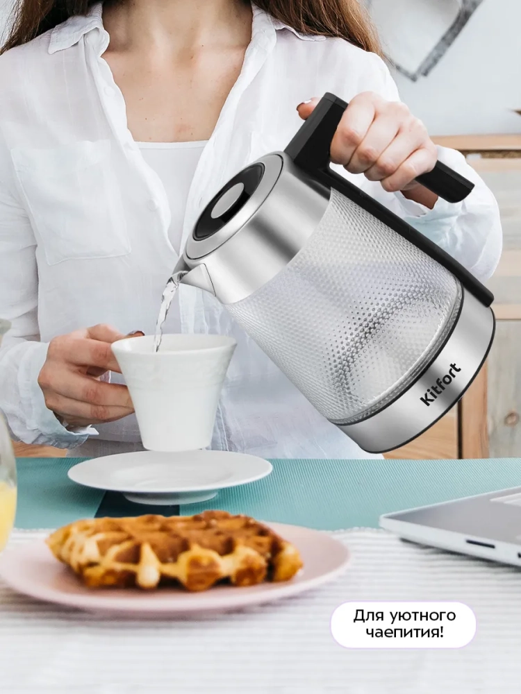 Выбирая электрочайники Kitfort, вы получаете качество, надежность и современный дизайн. Этот стеклянный электрический чайник с подсветкой станет отличным выбором для тех, кто ценит удобство и стиль в каждой детали.