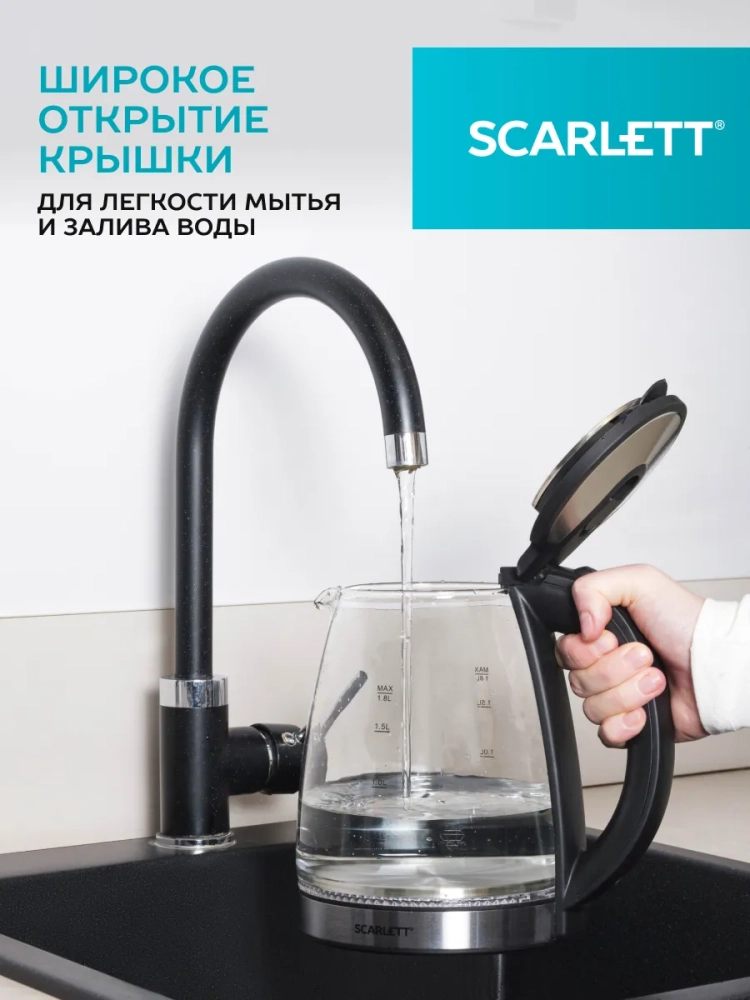 Электрический чайник Scarlett SC-EK27G103 обеспечивает надежное и безопасное использование. Внутренняя подсветка позволяет удобно пользоваться прибором даже при слабом освещении. Объём чайника составляет 1,8 литра. Шнур удобно убирается в специальный отсек в базе прибора. Система безопасности Safe Work – автоматическое отключение при закипании воды, защита от включения при отсутствии воды в чайнике.