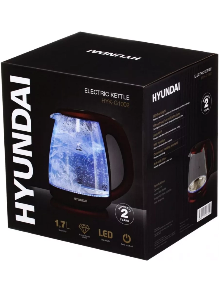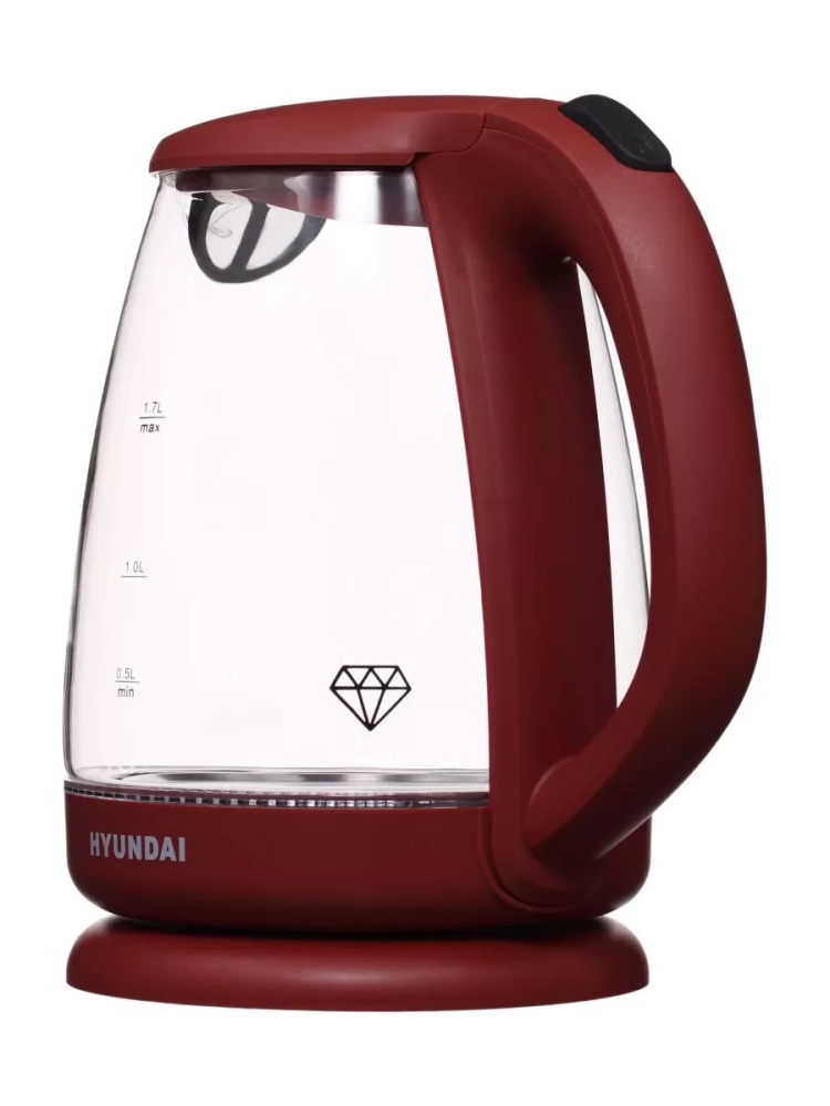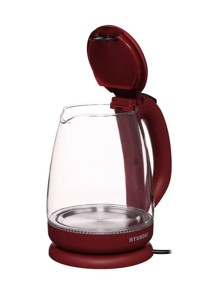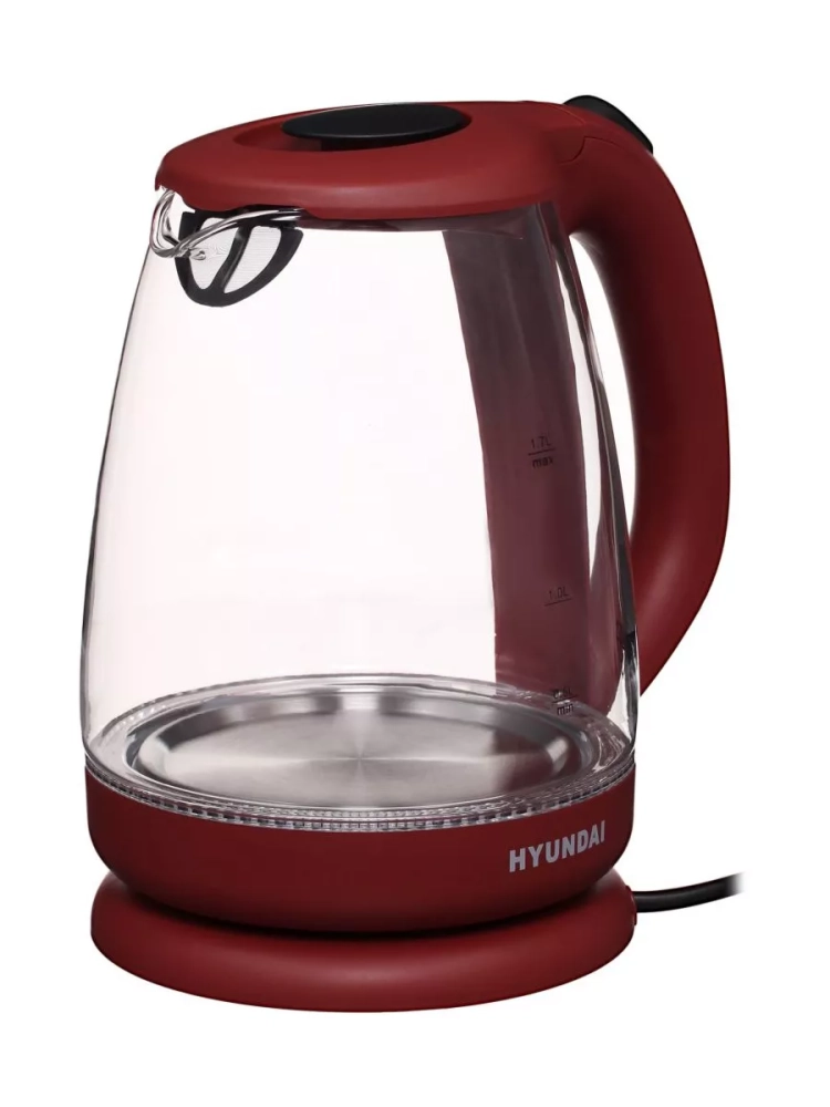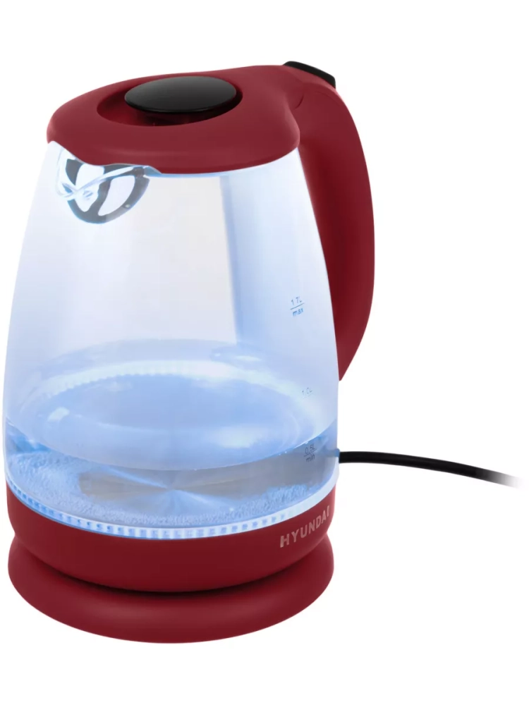 Чайник электрический Hyundai HYK-G1002 бордовый, объём 1.7л, мощность 2200Вт, материал корпуса: стекло/пластик. В чайнике используется высококачественное боросиликатное стекло, легкое, прочное, не темнеет и не окрашивается со временем. Красивая голубая LED подсветка украшает процесс закипания и оповещает о включении прибора. 2 года гарантии.