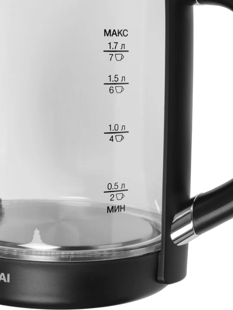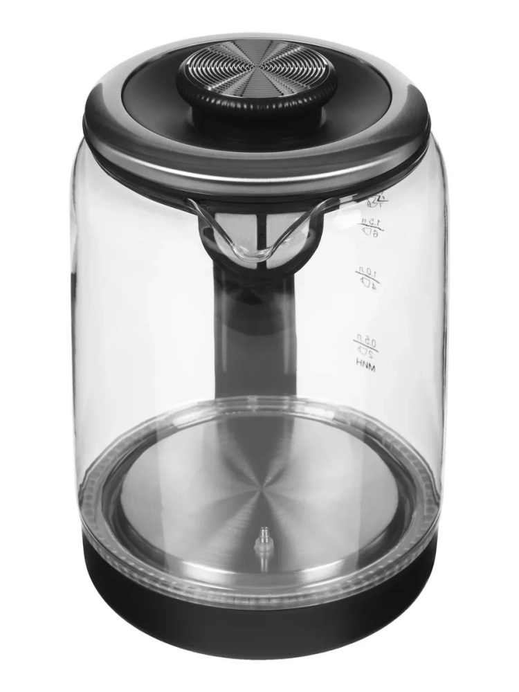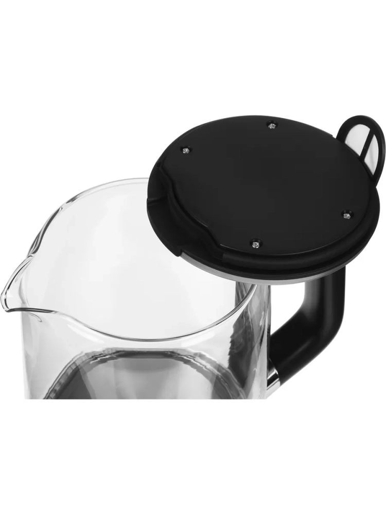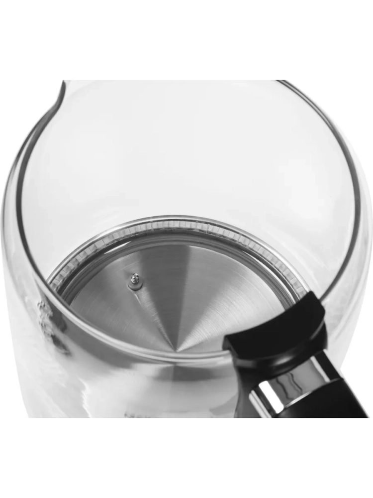 Мощность модели составляет 2200 Вт, что обеспечивает быстрый нагрев при объеме до 1,7 литра. Прозрачный корпус из термостойкого стекла делает процесс кипячения визуально привлекательным, а внутренняя подсветка добавляет современного стиля. Встроенный фильтр от накипи защищает напитки от частиц, а сам чайник — от износа.