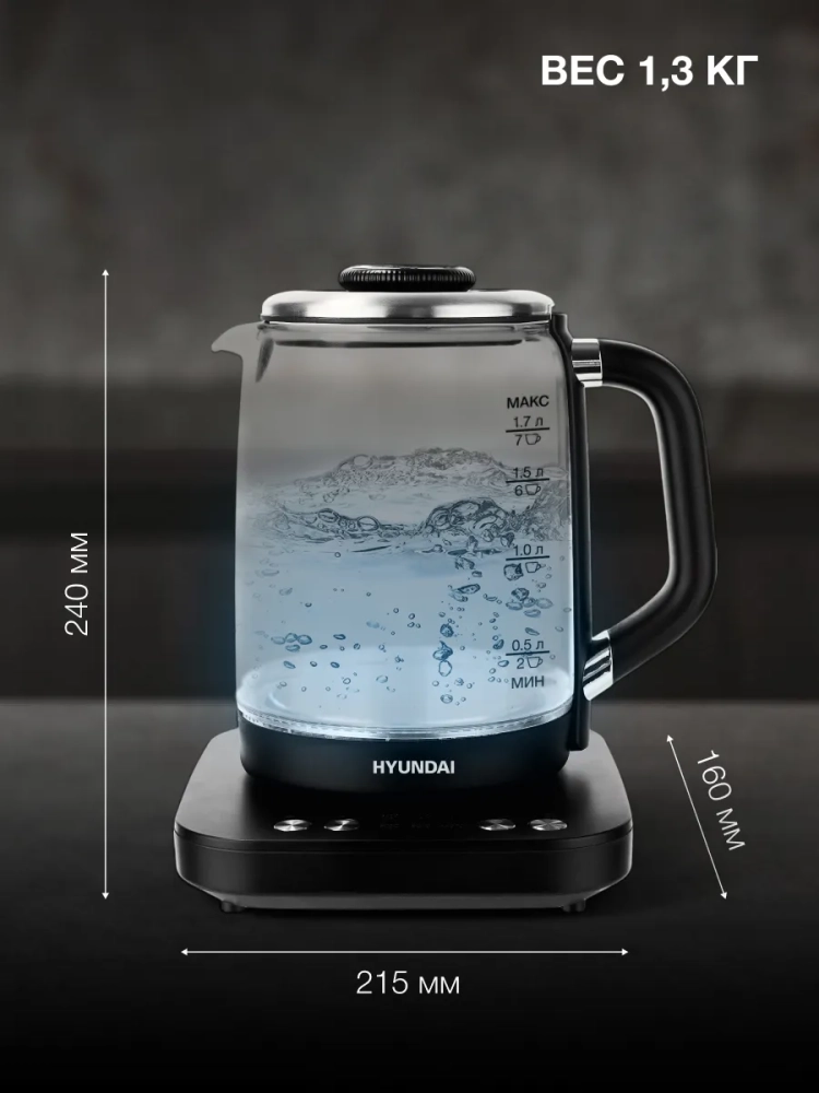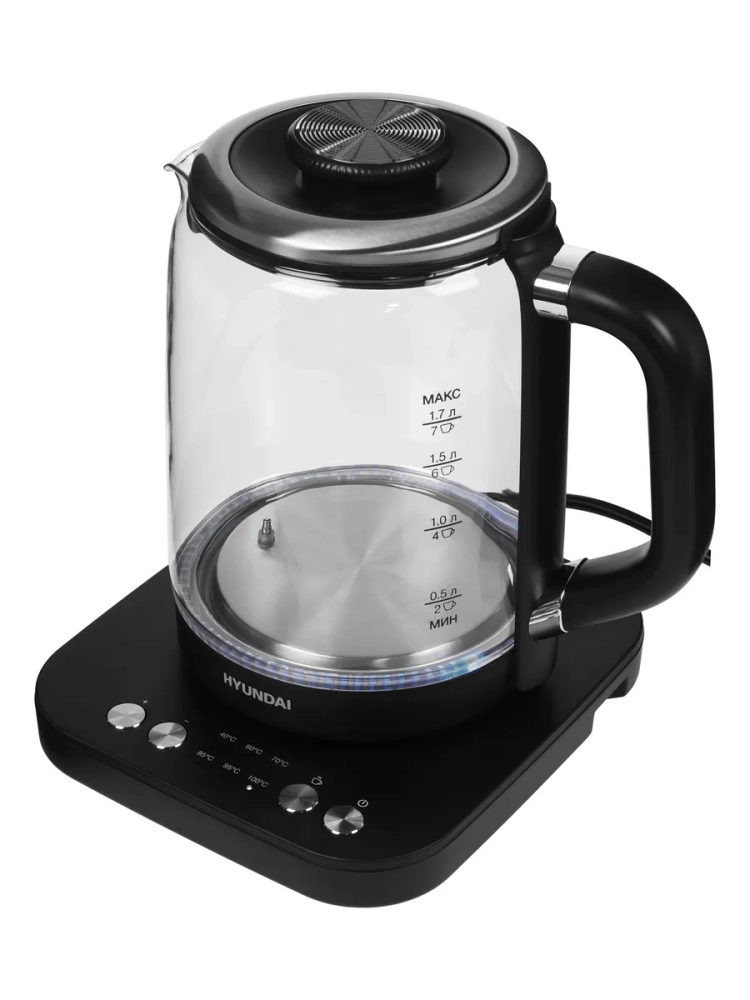 Эта модель подойдет тем, кто ценит не только скорость кипячения, но и возможность выбрать нужную температуру под каждый напиток. Hyundai HYK-G5506 сочетает функциональность, надежность и актуальный дизайн — для комфорта на кухне каждый день.