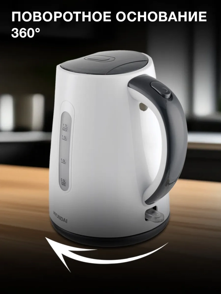Чайник Hyundai HYK-P2021 1.7л. 2200Вт белый/серый (пластик)