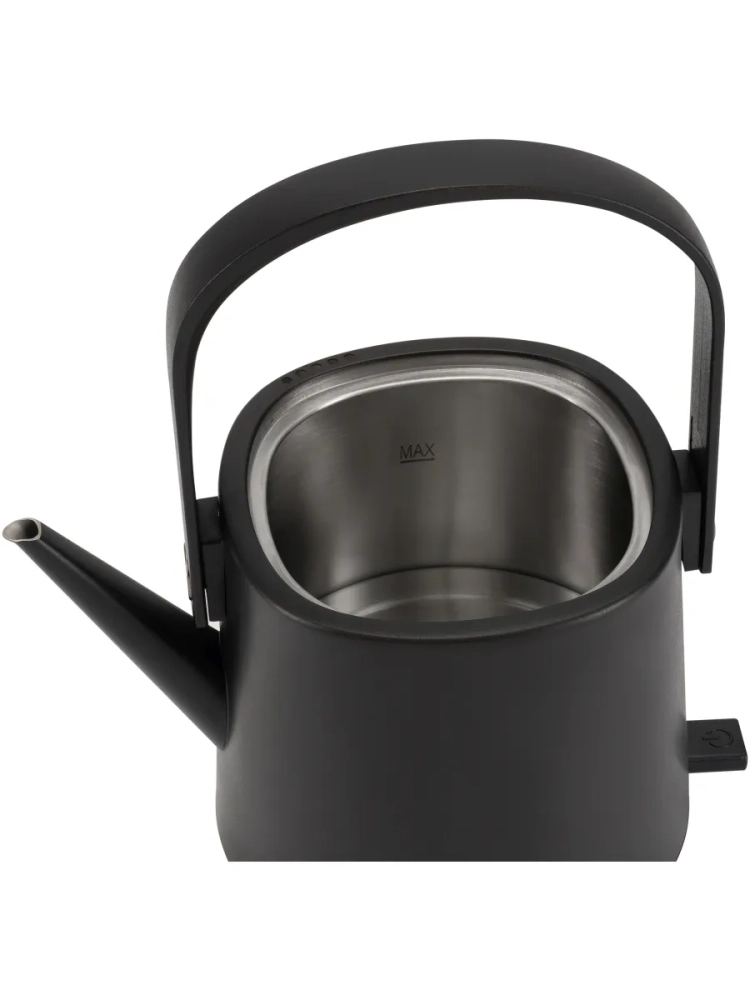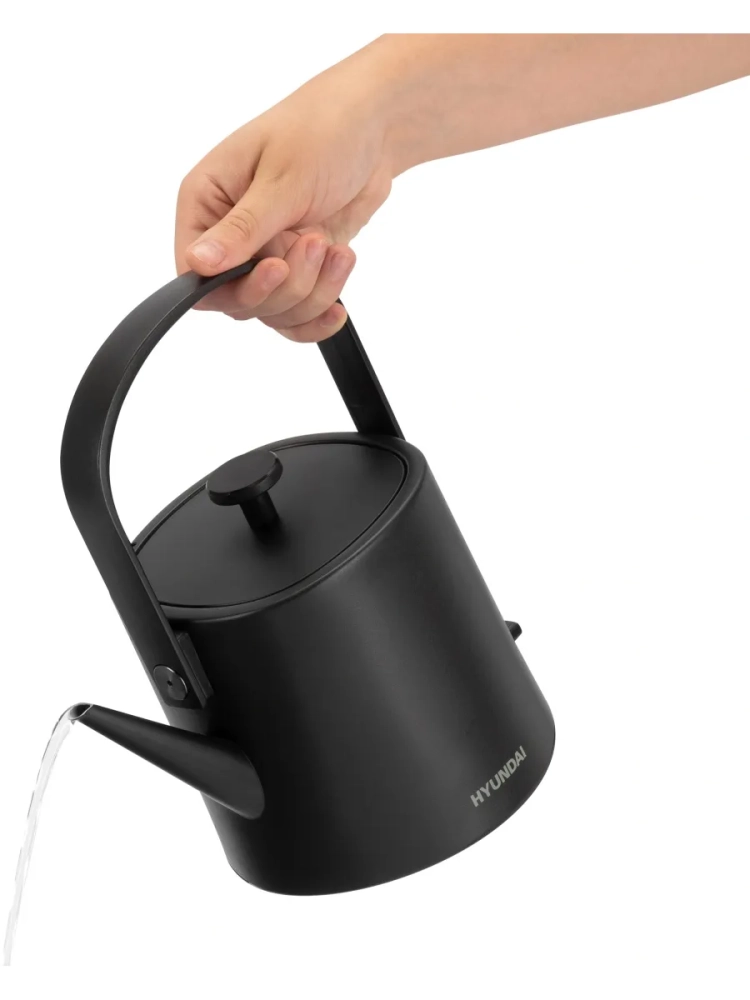 Форма чайника продумана до мелочей. Заостренный носик обеспечивает направленный поток воды без брызг и проливов, что особенно удобно при приготовлении напитков, где важна точность — например, при заваривании чая или приготовлении кофе методом пуровер. Полностью съемная крышка упрощает залив воды и позволяет легко очищать внутреннюю часть корпуса.