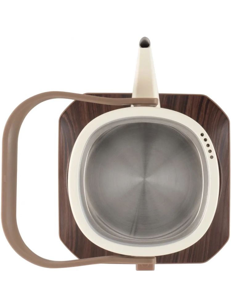 Особое внимание уделено качеству материалов. Корпус и нагревательная часть изготовлены из аустенитной пищевой стали 304, которая отличается повышенной устойчивостью к коррозии, деформации и ржавчине. Такой металл сохраняет эстетичный внешний вид даже при постоянном контакте с водой и гарантирует долгий срок службы устройства. Поверхность выполнена в матовом кремовом цвете с контрастными коричневыми деталями, что придает модели стильный внешний вид и делает её органичным элементом интерьера.