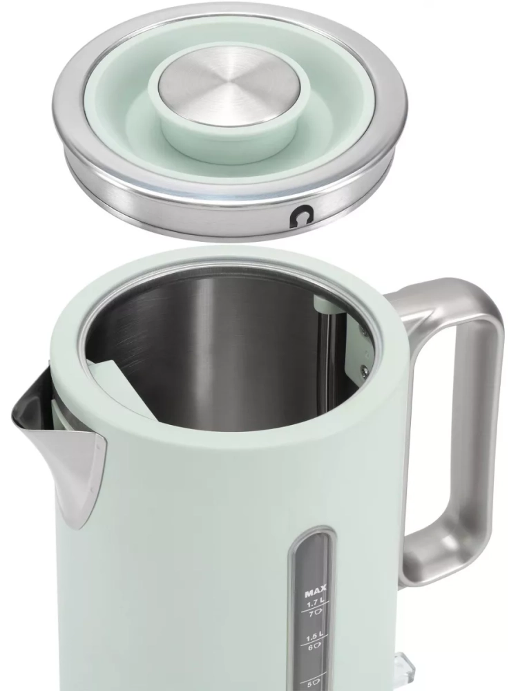 Объем чайника составляет 1,7 литра, чего достаточно для приготовления чая или кофе на большую компанию. Высокая мощность обеспечивает быстрый нагрев воды, что экономит ваше время.