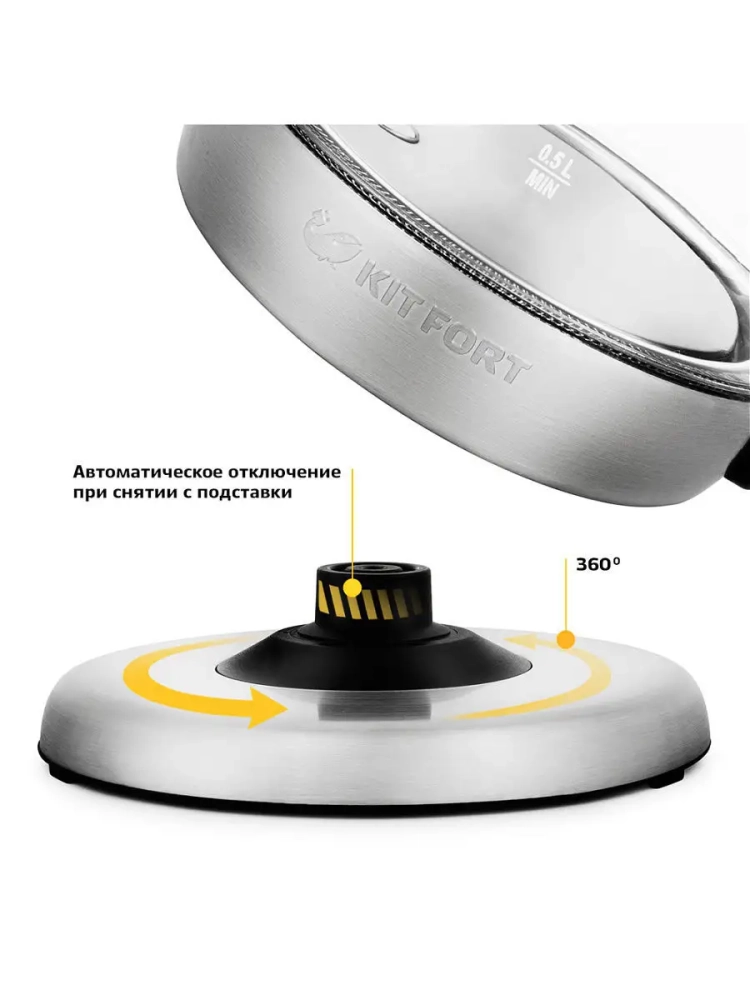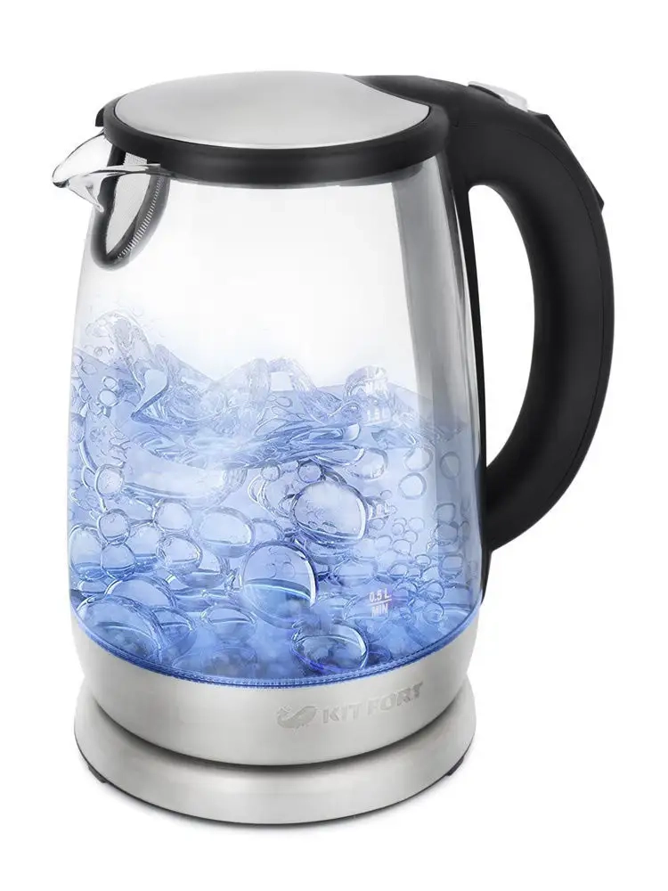 Электрический чайник с терморегулятором Kitfort КТ-628 может не только вскипятить воду, но и нагреть ее до температуры 40, 70, 80 и 90 *С, что очень удобно при заваривании различных сортов чая. Температура 40 *С пригодится для приготовления детского питания. Чайник также оснащен функцией поддержания температуры. Температура воды контролируется встроенным в дно чайника термодатчиком. Корпус чайника выполнен из стекла, а крышка и подставка - из сочетания пластмассы и нержавеющей стали. Мерная шкала нанесена на прозрачную часть корпуса. Большое горлышко чайника облегчает доступ внутрь при его мойке и во время удаления накипи. В носике расположен фильтр от накипи. Ручка чайника пластиковая, не нагревается и удобно лежит в руке. На ручке расположены кнопки выбора режимов работы и световые индикаторы. Чайник автоматически отключается при закипании и при снятии его с подставки, имеет защиту от перегрева и защиту от включения без воды.