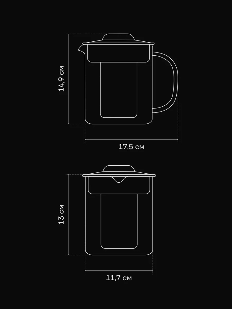 Корпус и ручка стеклянной колбы с эффектом металлика выполнены из жаропрочного затемненного стекла и обладают повышенной прочностью, благодаря покрытию PVC. PVC покрытие защищает посуду от царапин и сколов, и делает ее максимально устойчивой к повреждениям. Чайник из термостойкого материала не боится высоких температур, благодаря чему ваши напитки долго остаются горячими. Это позволяет максимально раскрыть вкус и аромат чая во время заваривания. Объем емкости 1000 мл рассчитан на 3-4 порции чая.