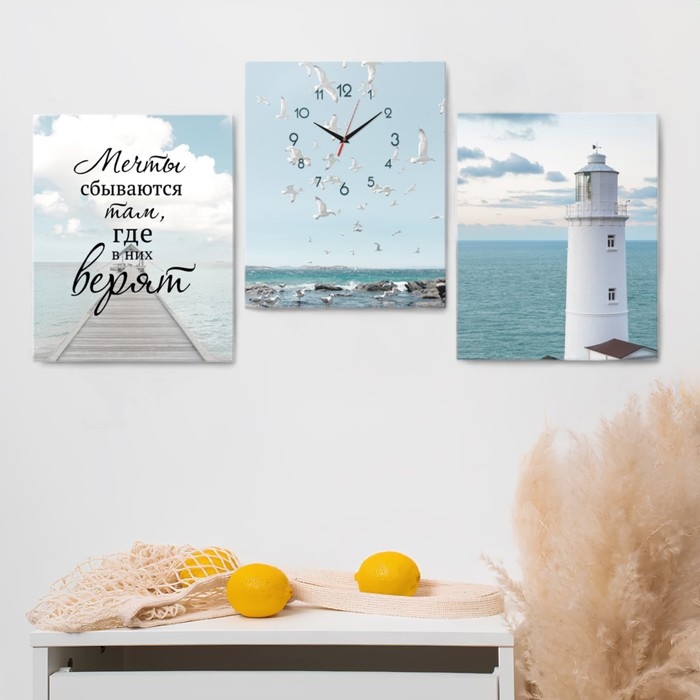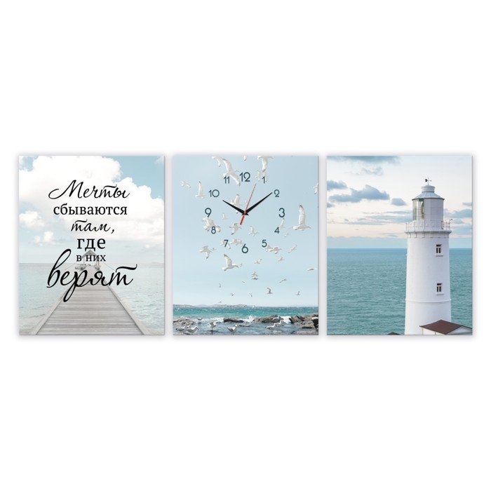 Часы-картина настенные модульные "Мечты сбываются...", 30 х 40 см, бесшумные, триптих