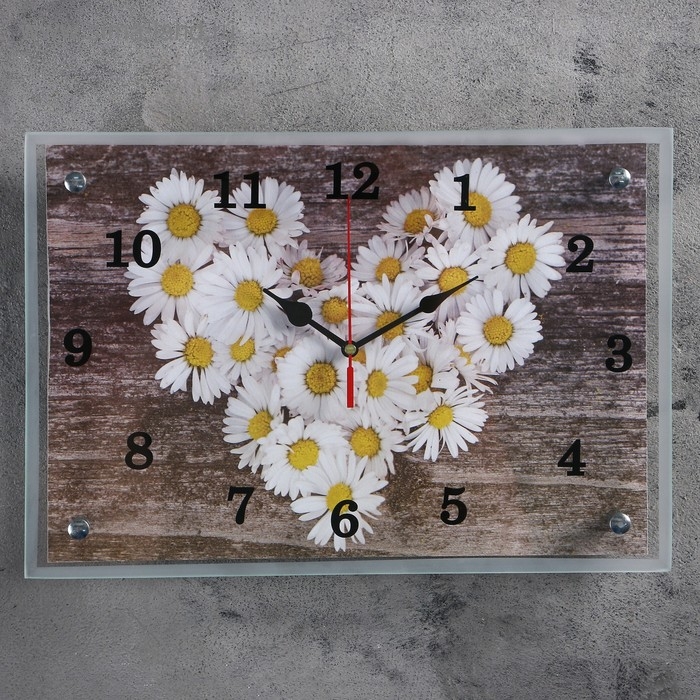 Часы-картина настенные, серия: Цветы, "Ромашки в форме сердца", 25 х 35 см