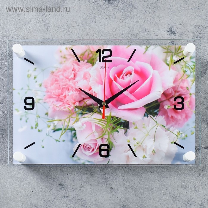 Часы настенные: Цветы, "Нежные розы", бесшумные, 20 х 30 см