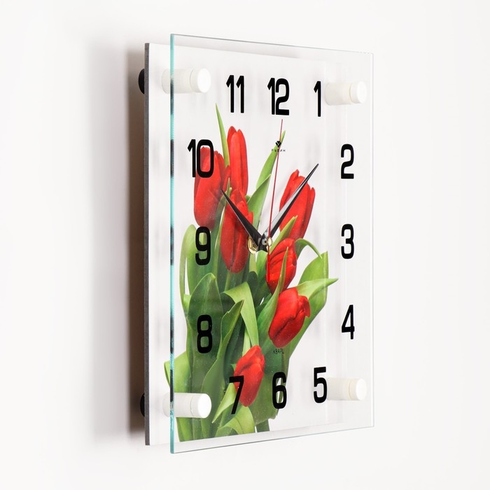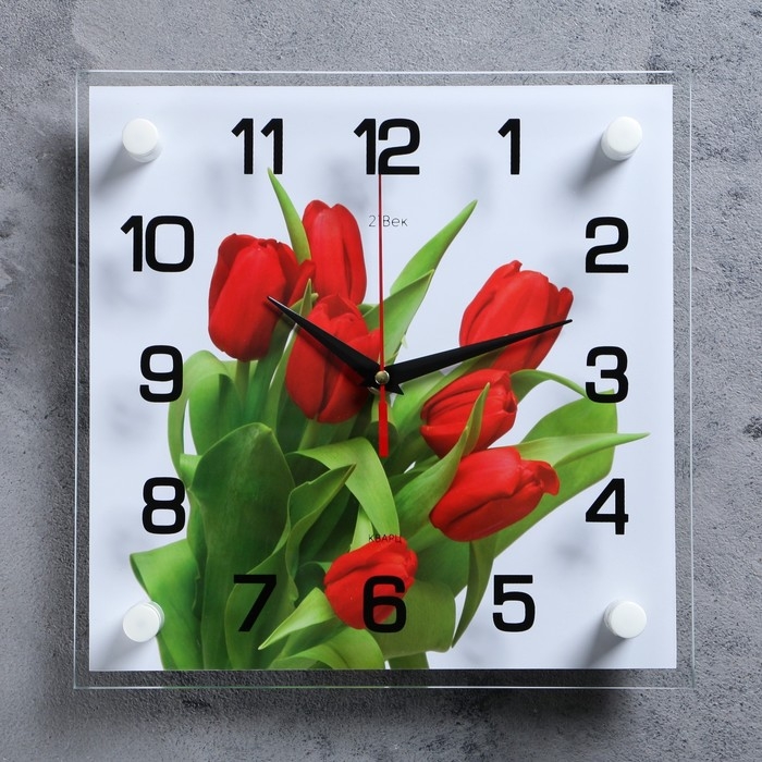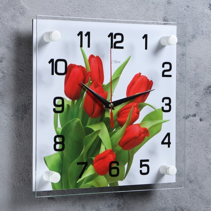 Часы настенные: Цветы, "Тюльпаны на белом фоне", 25 х 25 см