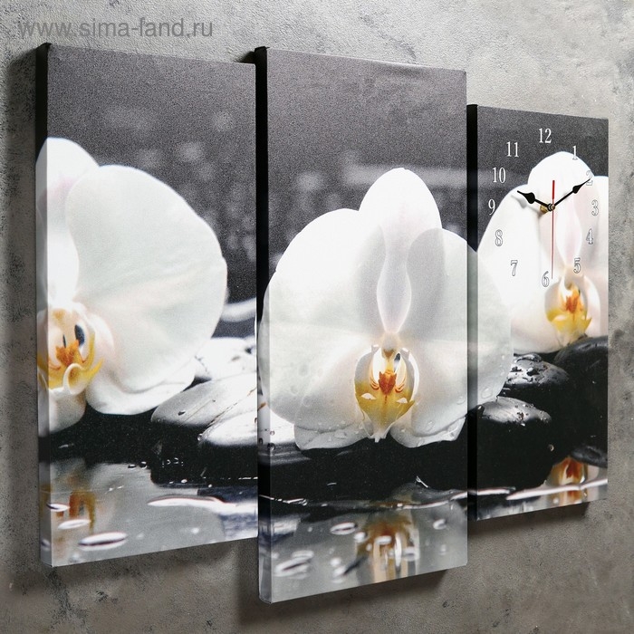 Часы настенные модульные «Белые орхидеи на камнях», 60 × 80 см