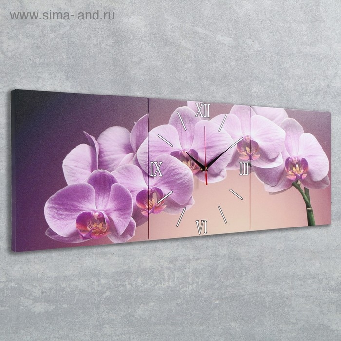 Часы настенные, модульные, серия: Цветы, "Фиолетовые орхидеи", 35х110 см