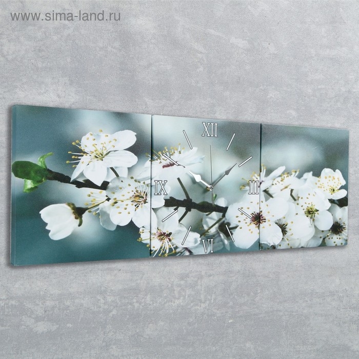 Часы настенные, модульные, серия: Цветы, "Весеннее цветение", 35х110 см